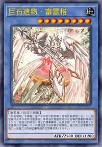 「巨石遗物」卡降临。这个卡名的①的效果1回合只能使用1次。 ①:把这张卡从手卡丢弃才能发动。等级合计直到变成仪式召唤的怪兽的等级以上为止,把自己的手卡·场上的怪兽解放,从手卡把1只「巨石遗物」仪式怪兽仪式召唤。 ②:只要这张卡在怪兽区域存在,自己场上的怪兽的攻击力·守备力上升自己墓地的仪式怪兽数量×300。